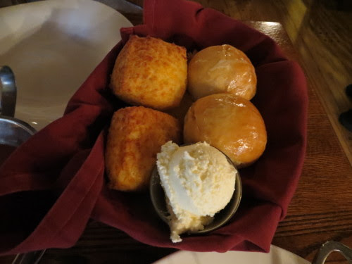 Patriot's Platter - Roasted Turkey Breast, Pot Roast, and Sliced Tavern Ham with Mashed Potatoes, Seasonal Vegetables, and Herb Stuffing; with Johnny Appleseed's tart for dessert, from Liberty Tree Tavern located in Disney's Magic Kingdom.